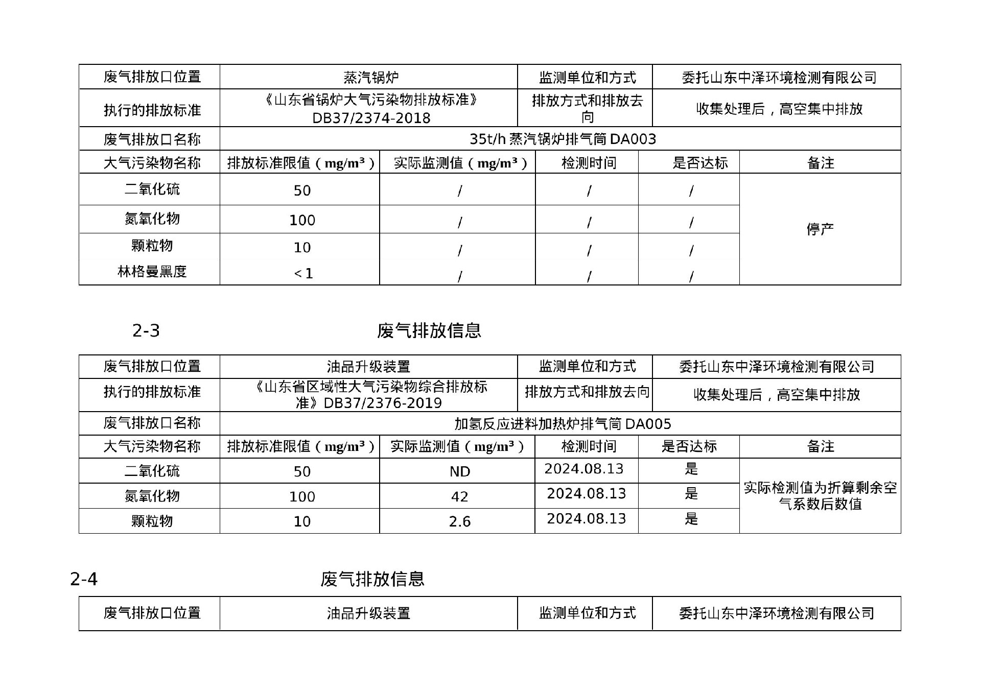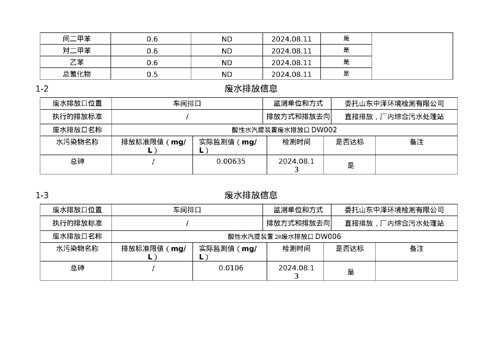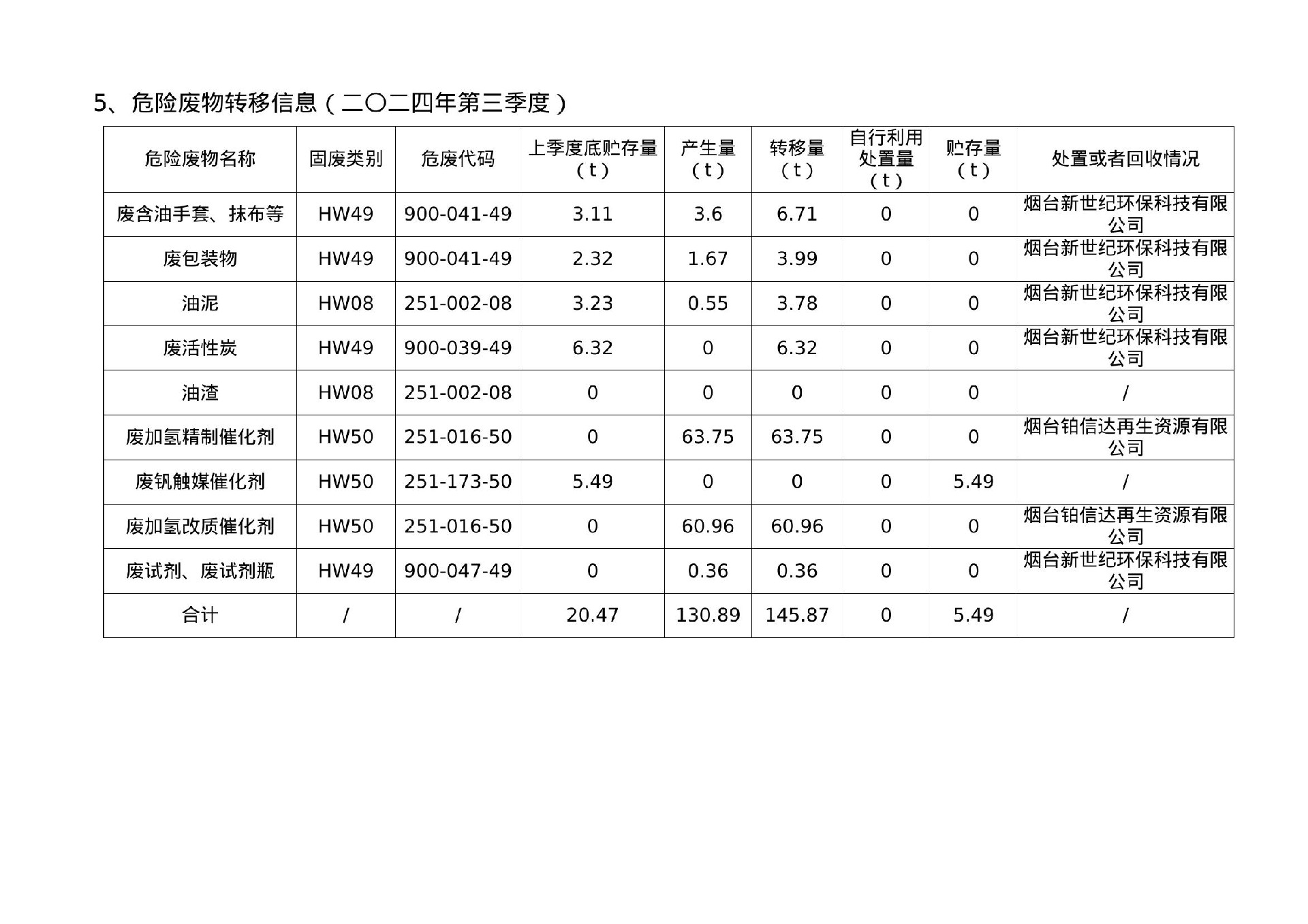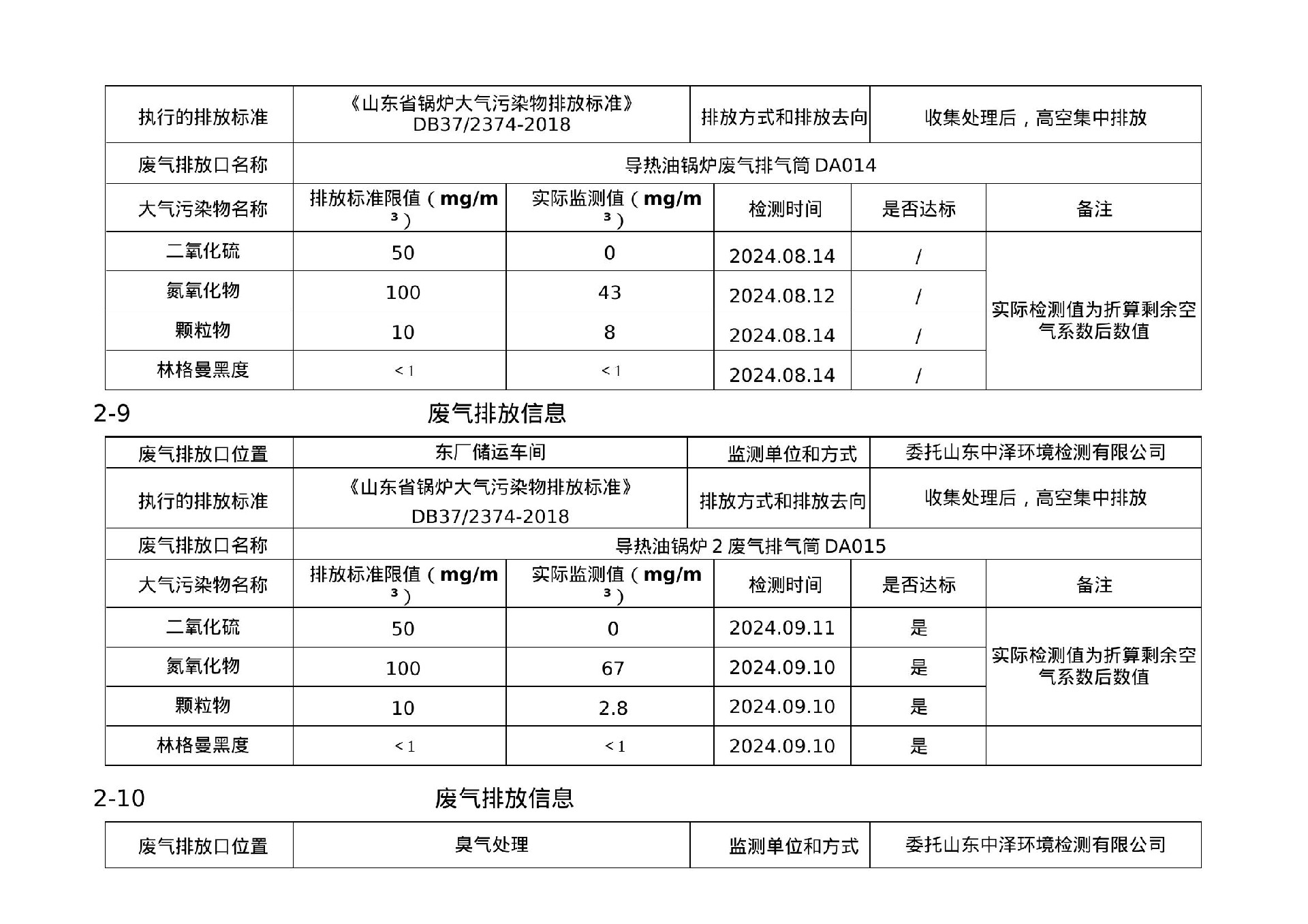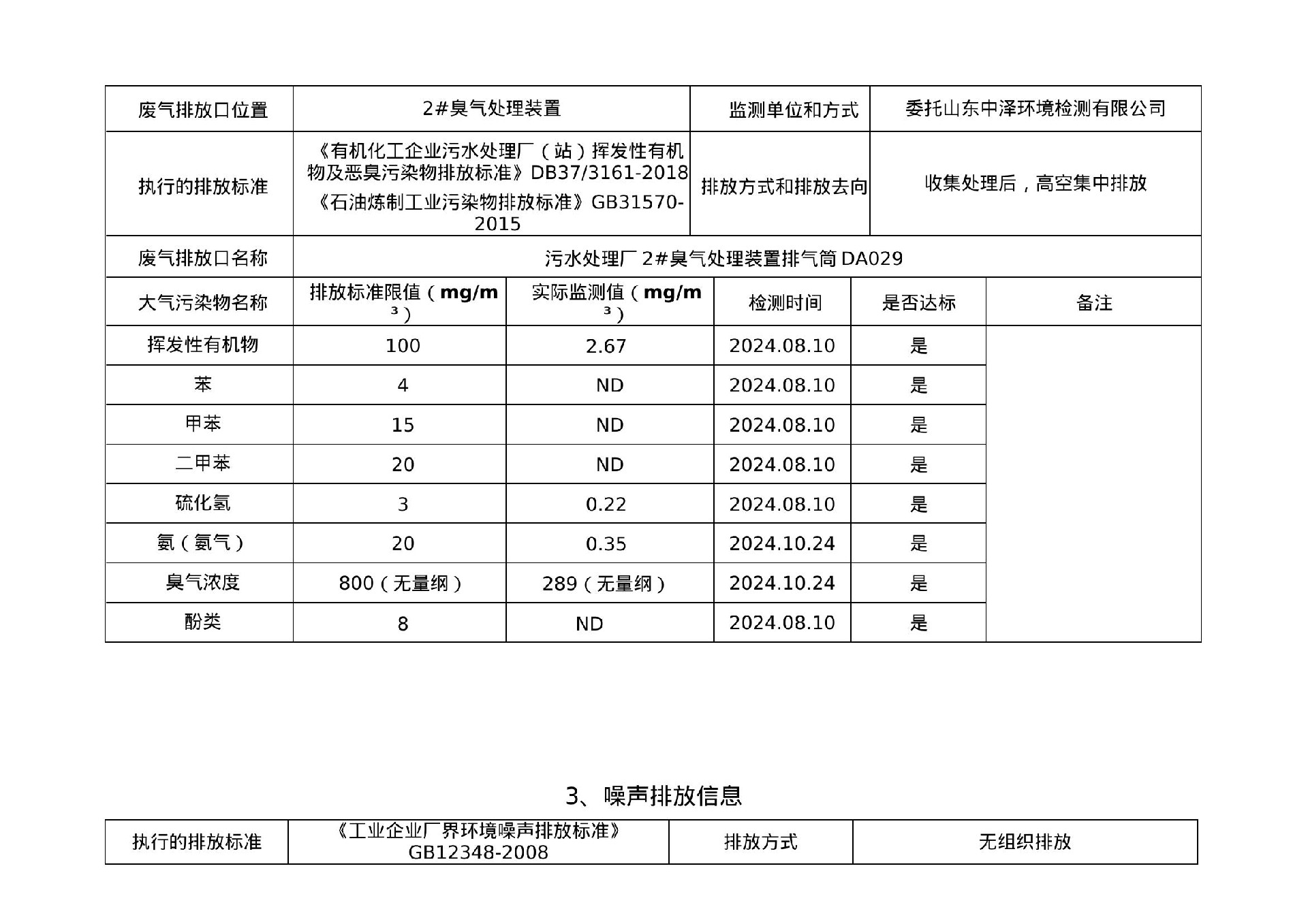2024年第三季度环境信息公示