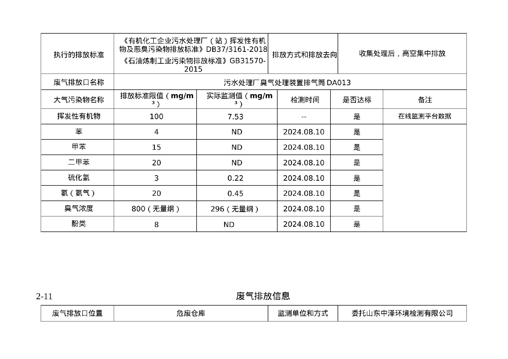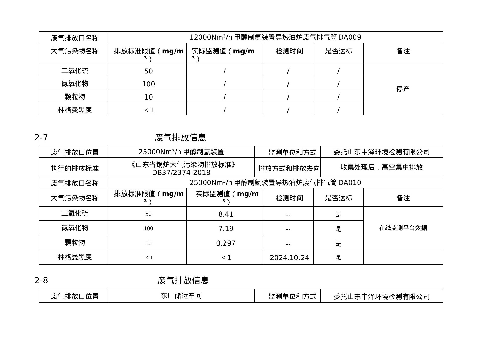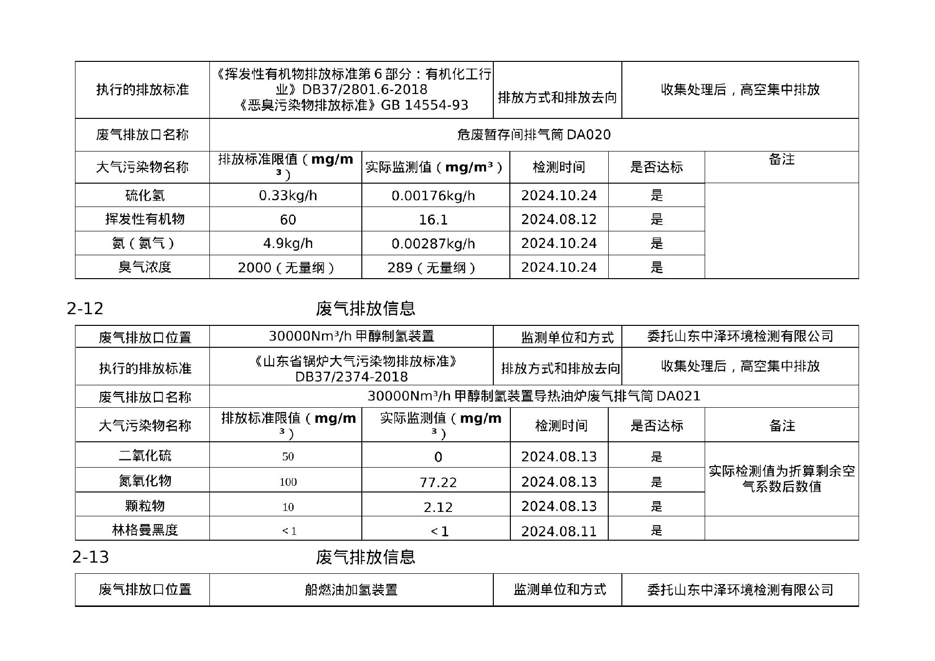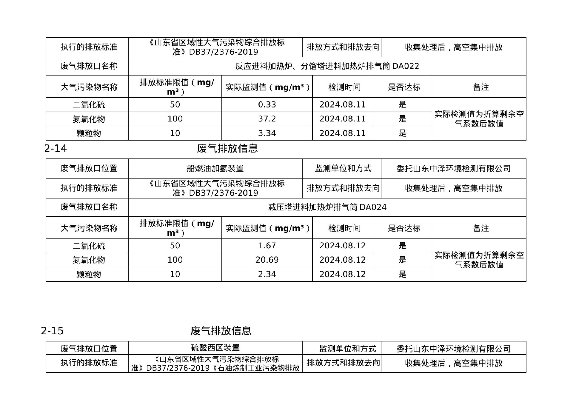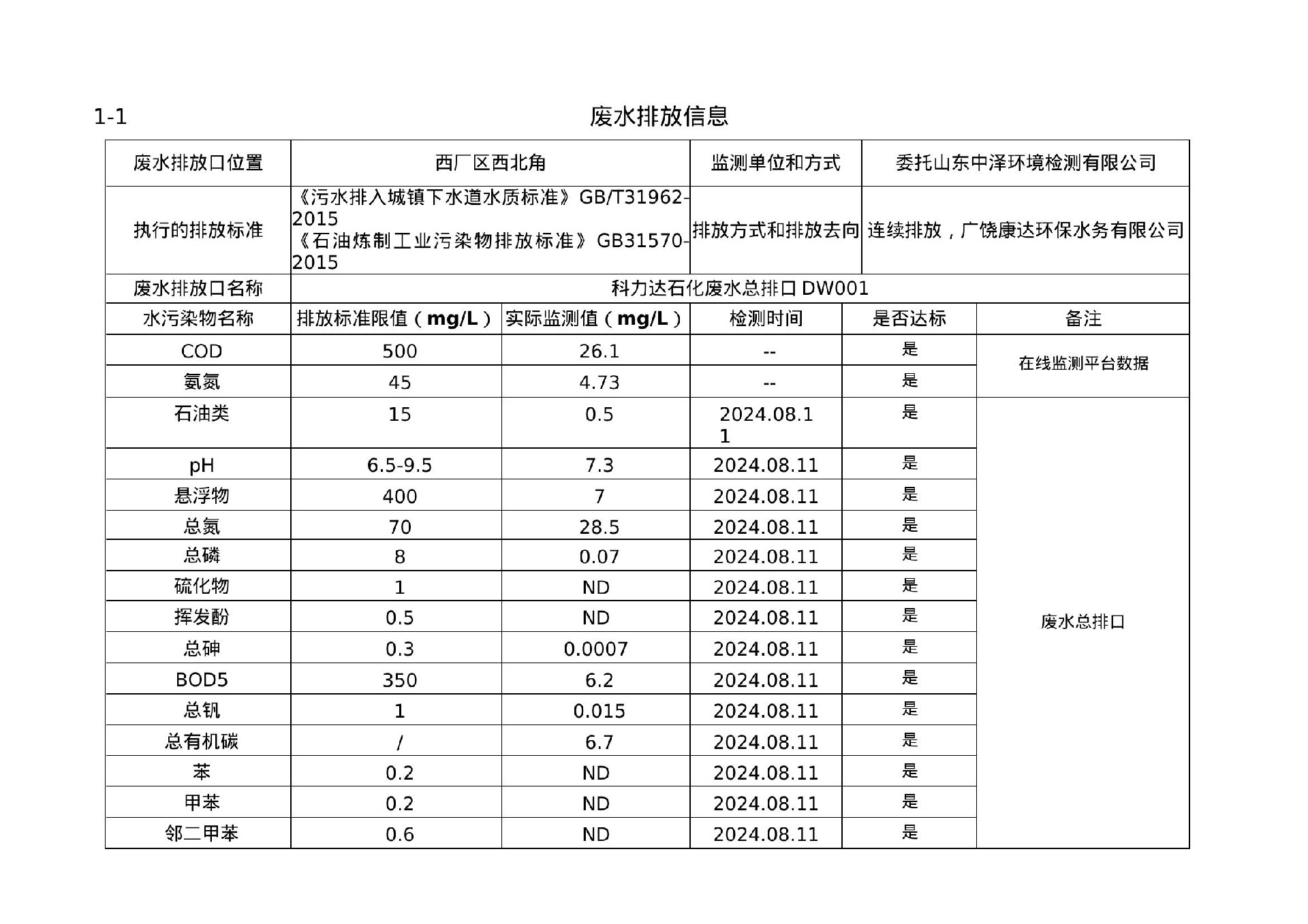 2024年第三季度环境信息公示